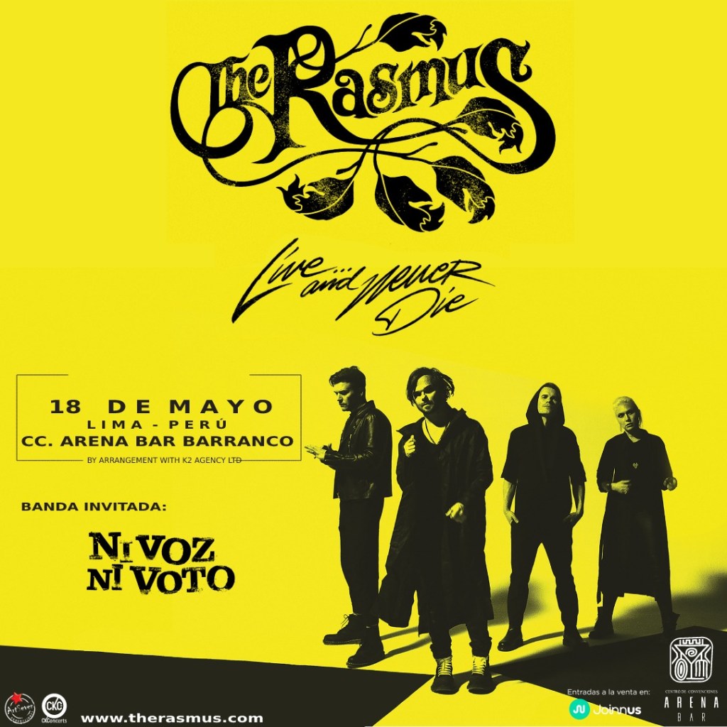Vamos a estar con The Rasmus el próximo jueves 18 de mayo en el barranco arena y las entradas están en Joinnus. Nosotros somos el acto de apertura, vamos a tocar ahí un tiempito antes de ellos para calentar un poco el ambiente.
