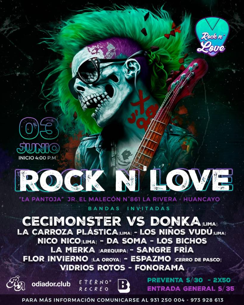 El Festival Rock N Love regresa con fuerza en su próxima edición para este 03 de junio en La Pantoja. Este evento musical ofrece más de 10 horas de rock, indie y pop en vivo en Huancayo, consolidándose como una de las opciones más destacadas para los amantes de la música en la ciudad. En su nueva edición nos presenta un line up de 12 artistas entre huancaínos y provincias, siendo encabezados Cecimoster vs. Donka.