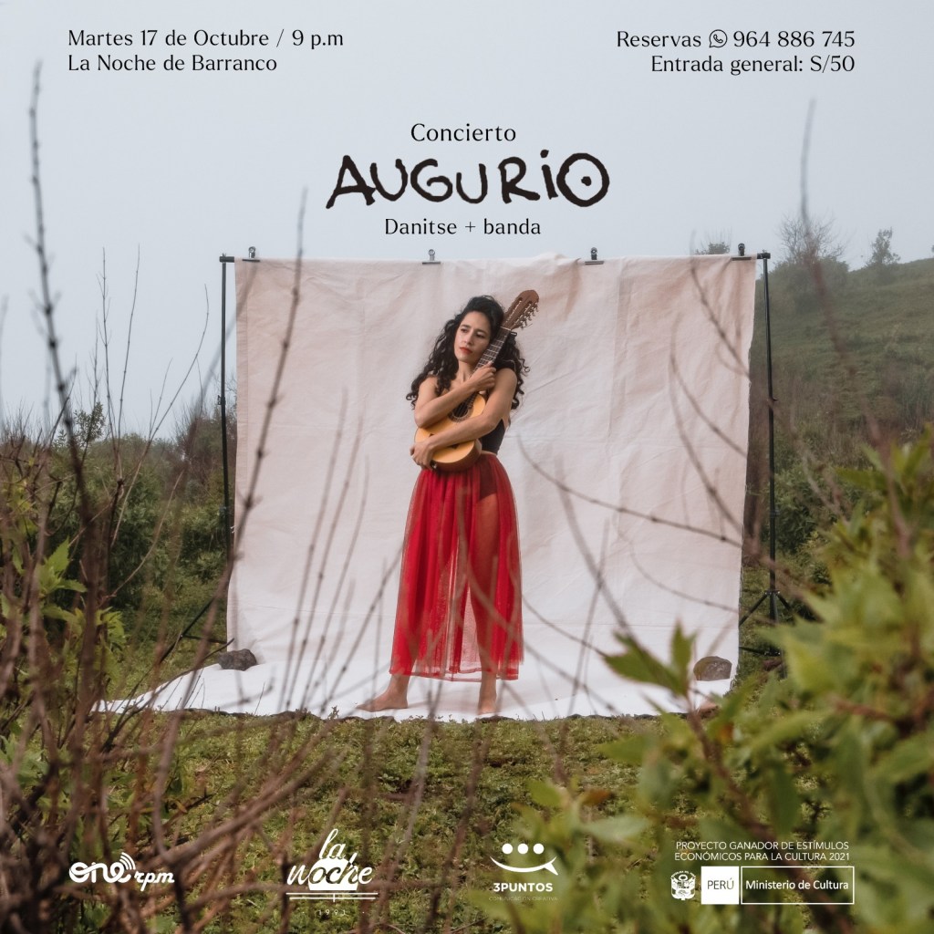 La presentación en vivo de «Augurio» será el martes 17 de octubre en un emocionante concierto en La Noche de Barranco a las 9 p. m. Venta directa en este link: https://wa.link/lg3ybv Este evento contará con la presencia de la banda completa de Danitse y la participación de invitados especiales, prometiendo una experiencia musical inolvidable para todos los amantes de la música peruana y los sonidos innovadores.