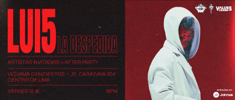 Uno de los primeros conciertos del 2024 es la fecha de despedida de Lui5. El concierto será un show de larga duración, con apariciones sorpresas de los colaboradores del disco y actuaciones especiales de la Tashar Mafia, gang del artista que reúne el nuevo talento nacional. Luego, se armará la fiesta con DJs locales.