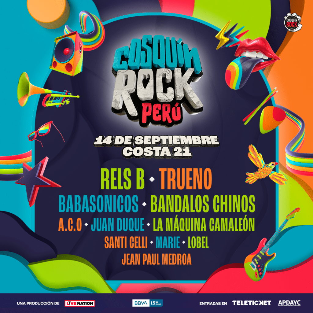 Entre los headliners se encuentran Rels B de España, Trueno de Argentina y los siempre entrañables Babasónicos, proyectos musicales de peso internacional que, por primera vez, compartirán escenario en la edición local del Cosquín Rock Perú. Además, el festival presenta a Bándalos Chinos, conocidos por su renovación del rock argentino, así como a los talentosos A.C.O (Perú), Juan Duque (Colombia), La Máquina Camaleón (Ecuador), Santi Celli (Argentina), Marie (Perú), Lobel (Perú) y Jean Paul Medroa (Perú), quienes demostrarán el poder y la diversidad de la música en la región.