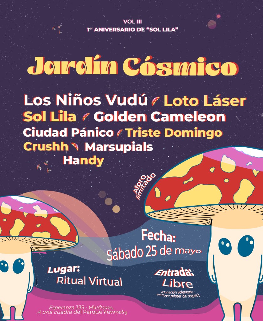 El lanzamiento de «Lima de aquí a cien años» coincide con la celebración del primer aniversario de la banda, con el evento «Jardín Cósmico vol. III». Esta fiesta, que fusiona nostalgia y celebración, contará con la participación de las bandas Los Niños Vudú, Golden Cameleon, Loto Láser, Ciudad Pánico, Triste Domingo, Crushh, Marsupials y Handy. La cita es el sábado 25 de mayo en Ritual Virtual, en Miraflores. La entrada es libre para todos los amantes de la música y la experimentación artística.