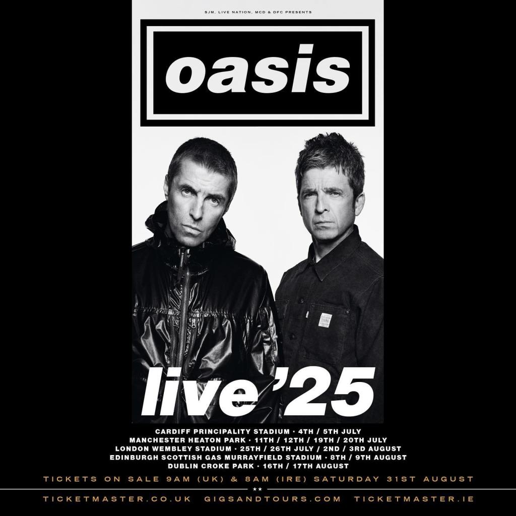 Oasis actuará en Cardiff, Manchester, Londres, Edimburgo y Dublín en el verano de 2025. Estos serán sus únicos conciertos en Europa el próximo año, y será uno de los momentos en vivo más grandes y las entradas más codiciadas de la década.