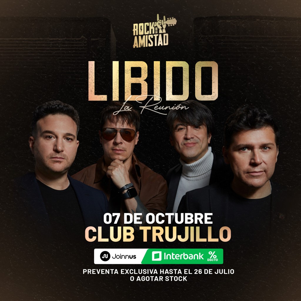 Las entradas para el concierto de Líbido en Trujillo ya están a la venta. Los interesados pueden adquirirlas en preventa a través de Joinnus o en el punto de venta físico en Real Plaza de Trujillo. Además, aquellos que aprovechen la preventa Interbank podrán asegurar su lugar en uno de los eventos más esperados del año. No te pierdas esta oportunidad única de vivir el rock en su máxima expresión el 7 de octubre en el Club Trujillo.