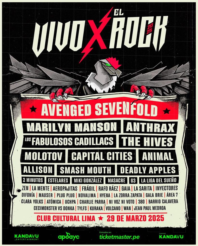 El cartel de Vivo X el Rock 2025 es un lujo para los amantes del rock. Figuras internacionales como Avenged Sevenfold y Marilyn Manson encabezan el cartel, junto a The Hives, Los Fabulosos Cadillacs y Micky González, quienes celebran 50 años de trayectoria. Más de 40 bandas nacionales e internacionales, representando diversos estilos, aseguran un recorrido musical diverso que promete mantener al público vibrando de inicio a fin.
