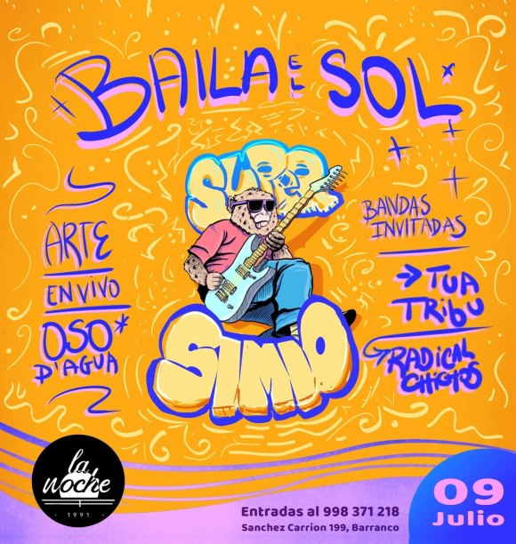 Para quienes quieran disfrutar de la energía de Super Simio en vivo, el próximo 9 de julio se llevará a cabo la presentación de Baila el Sol en la Noche de Barranco, un evento que promete ser una verdadera fiesta para los amantes de la música peruana. Además de Super Simio, el evento contará con las presentaciones de Tua Tribu y Radical Chichos, además de una experiencia visual con el arte en vivo de Oso d’Agua. Las entradas ya están disponibles, con precios que van desde los 25 soles en preventa hasta los 35 soles en la entrada general.