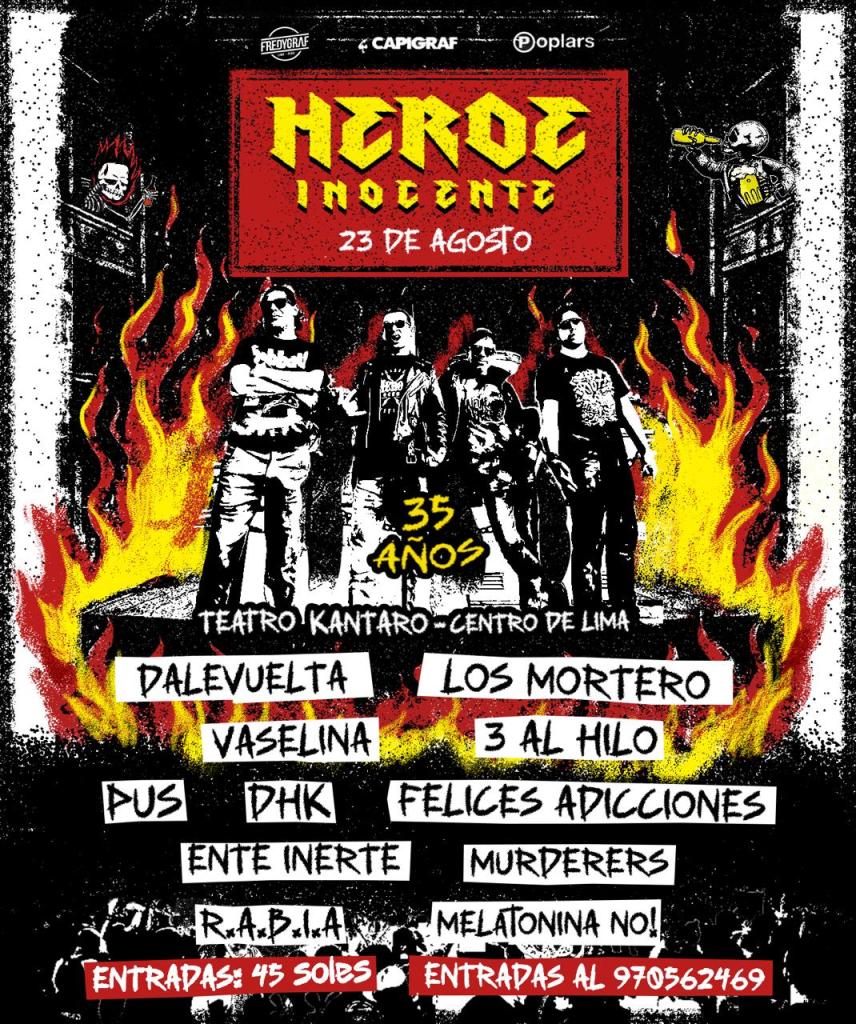 Héroe Inocente siempre ha tenido la capacidad de reflejar la vida que late en las esquinas de Lima. Sus canciones recogen conversaciones, bromas, discusiones amorosas y amistades que se sostienen con los años, mientras la ciudad observa y a veces se impone con injusticias o la mediocridad de quienes deberían cuidar de ella. Esa mirada callejera ha definido su discografía y se hará sentir con fuerza este sábado 23 de agosto en el Teatro Kantaro, donde la banda celebrará 35 años de trayectoria.