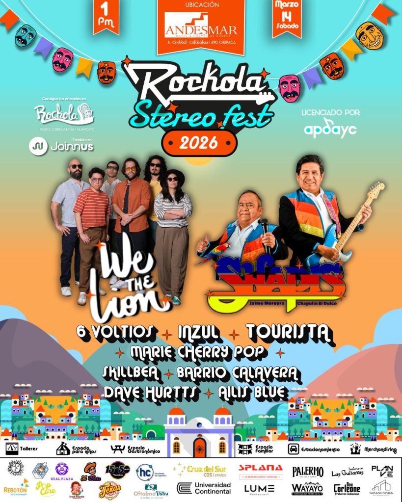 El acceso al festival ya se encuentra disponible a través de Joinnus, Yape y en el punto físico de Rockola 87 (La Breña 162, Huancayo) por un costo general de S/ 80.00. Como parte del compromiso con la comunidad anfitriona, los residentes de Chupaca cuentan con una tarifa preferencial de S/ 50.00 presentando su DNI en el Hotel Andesmar. Con esta iniciativa, el Rockola Stereo Fest no solo ofrece un concierto, sino que posiciona a Junín como el nuevo referente del turismo de festivales en el Perú, fusionando la tradición de la «Ciudad de los Shapis» con la vanguardia del entretenimiento nacional.